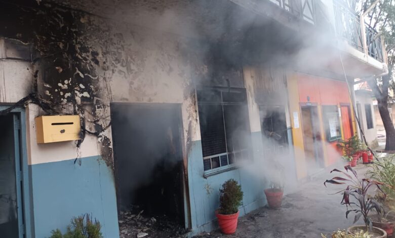 आग से कुछ कक्षों में रखे दस्तावेज और फर्नीचर जलकर हुए राख, लेकिन किसी जनहानि की खबर नहीं।